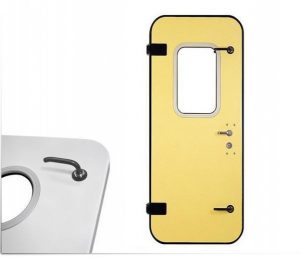- Portes étanches (watertight), résistants aux intempéries ou étanches d’un côté (weathertight) et aux embruns (spraytight). Portes et trappes en GRP (Glassfiber Reinforced Polyester), aluminium et acier.
